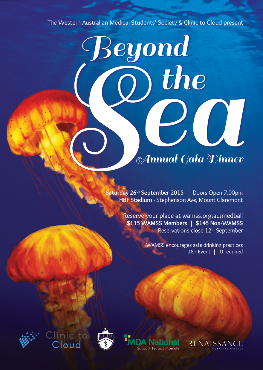 BRIEF: Poster and web graphics for the UWA WAMSS Annual Gala Dinner 2015. Client provided a mood-board containing images and colours chosen to reflect their ocean themed dinner.