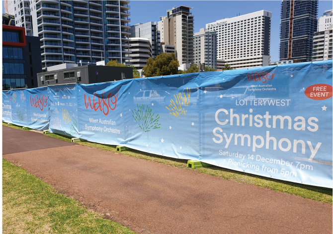 Fence signage for the WASO's LotteryWest Christmas Symphony Concert 2019